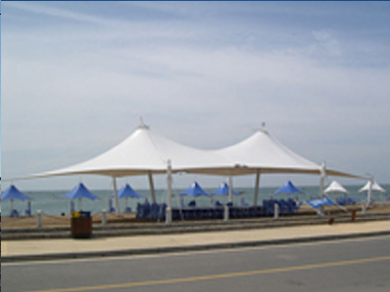 景觀膜結(jié)構(gòu)又稱(chēng)張拉膜景觀,主要通過(guò)膜結(jié)構(gòu)的張拉式 呈現(xiàn)出唯美的結(jié)構(gòu)特征;膜材料是指聚酯纖維基布或PVDF、PVF、PTFE等不同的表面涂層,配以?xún)?yōu)質(zhì)的PVC組成的具有穩(wěn)定的形態(tài),并可承受一定載荷的建筑紡織品。它的壽命因不同的表面涂層而異,一般可達(dá)成10-20年;其外觀整潔大方,自潔性強(qiáng)。主要應(yīng)用于各大公園,世博園,和一些廣場(chǎng),商場(chǎng)等場(chǎng)所。