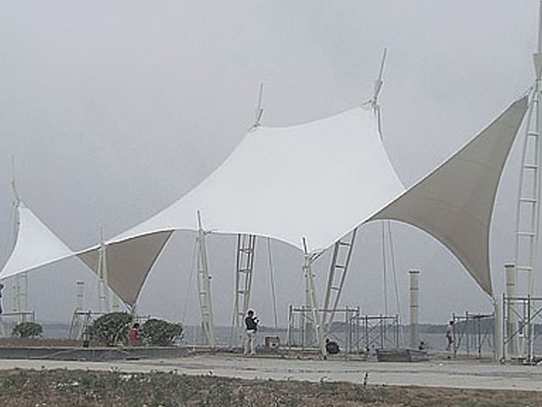 景觀膜結(jié)構(gòu)又稱張拉膜景觀,主要通過膜結(jié)構(gòu)的張拉式 呈現(xiàn)出唯美的結(jié)構(gòu)特征;膜材料是指聚酯纖維基布或PVDF、PVF、PTFE等不同的表面涂層,配以優(yōu)質(zhì)的PVC組成的具有穩(wěn)定的形態(tài),并可承受一定載荷的建筑紡織品。它的壽命因不同的表面涂層而異,一般可達成10-20年;其外觀整潔大方,自潔性強。主要應(yīng)用于各大公園,世博園,和一些廣場,商場等場所。