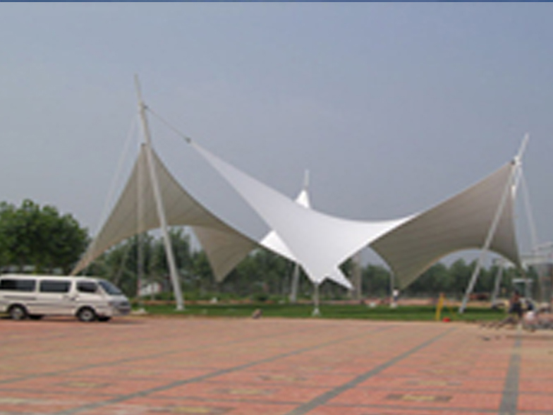 景觀膜結(jié)構(gòu)又稱張拉膜景觀,主要通過膜結(jié)構(gòu)的張拉式 呈現(xiàn)出唯美的結(jié)構(gòu)特征;膜材料是指聚酯纖維基布或PVDF、PVF、PTFE等不同的表面涂層,配以優(yōu)質(zhì)的PVC組成的具有穩(wěn)定的形態(tài),并可承受一定載荷的建筑紡織品。它的壽命因不同的表面涂層而異,一般可達(dá)成10-20年;其外觀整潔大方,自潔性強(qiáng)。主要應(yīng)用于各大公園,世博園,和一些廣場,商場等場所。