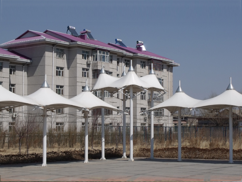 景觀膜結(jié)構(gòu)又稱張拉膜景觀,主要通過膜結(jié)構(gòu)的張拉式 呈現(xiàn)出唯美的結(jié)構(gòu)特征;膜材料是指聚酯纖維基布或PVDF、PVF、PTFE等不同的表面涂層,配以優(yōu)質(zhì)的PVC組成的具有穩(wěn)定的形態(tài),并可承受一定載荷的建筑紡織品。它的壽命因不同的表面涂層而異,一般可達(dá)成10-20年;其外觀整潔大方,自潔性強。主要應(yīng)用于各大公園,世博園,和一些廣場,商場等場所。
